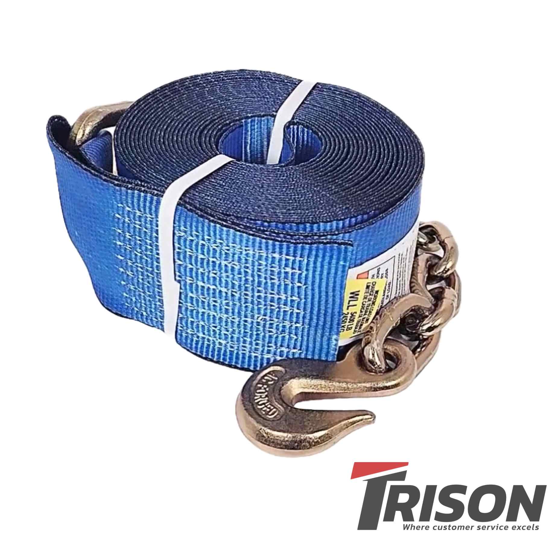 Ancra’s 4-in. x 30-ft. winch strap with chain anchor is engineered with the strength to handle heavy-duty cargo tie-down jobs. With a working load limit of 5,400 lbs. (2,450 kg) and a breaking strength of 16,200 lbs. (7,348 kg), the 4-in. treated polyester webbing is more than ready to take on heavy loads easily and efficiently. It also delivers 50% more retained strength over standard webbing after 2,500 full cycles, providing a durability rating that matches the high standards of this product.